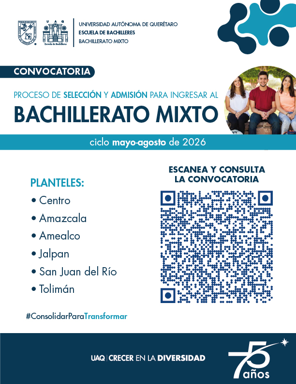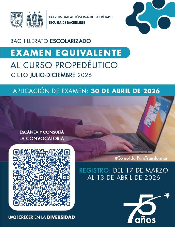 ¡Bienvenido a la página de la Escuela de Bachilleres de la Universidad Autónoma de Querétaro! Aquí comienza una de las etapas más emocionantes de tu vida, llena de nuevos retos y oportunidades. En este sitio, encontrarás todo lo que necesitas para formar parte de nuestra comunidad, desde información detallada sobre nuestra oferta académica hasta las fechas clave de convocatorias y los eventos más importantes.